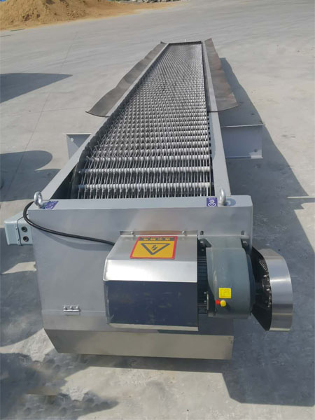 格柵機(jī)工作原理 它主要由卷揚(yáng)機(jī)構(gòu)、鋼絲繩、耙斗、鋼絲繩滑輪、耙斗伸長裝置、機(jī)械力矩保護(hù)、運(yùn)動(dòng)驅(qū)動(dòng)、地面固定軌道和移動(dòng)驅(qū)動(dòng)定位裝置組成。整機(jī)的定位和清洗作用、耙斗的升降、耙斗污垢的開啟和關(guān)閉、耙斗污垢的刮除與固定安裝鋼絲繩牽引耙斗格柵除污機(jī)相同,僅上架與下架分離,上部框架全部設(shè)置在移動(dòng)驅(qū)動(dòng)上。當(dāng)用筆劃開關(guān)控制去污時(shí),機(jī)架可以移動(dòng)到需要去污染的格柵位置。當(dāng)上下齒條對(duì)齊準(zhǔn)確時(shí),耙斗可順利去污。對(duì)于寬柵格,除污機(jī)移動(dòng)齒耙的有效寬度,并繼續(xù)去污,直到網(wǎng)格表面的污垢被清除,網(wǎng)格前后的水位差達(dá)到正常值。對(duì)于多通道分布式格柵,在對(duì)一條溝格柵進(jìn)行去污后,除污機(jī)移動(dòng)到另一條溝,并繼續(xù)去污,直至所有溝渠格柵柵面污物清理完畢,柵前后水位差達(dá)到正常值時(shí)為止。